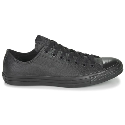 Le modèle Chuck Taylor All Star Leather, déclinaison des emblématiques sneakers basses de Converse, arbore une empeigne en cuir à l’aspect luxueux et texturé. Ces sneakers présentent tous les traits classiques qui leur confèrent leur authenticité : écusson avec l’étoile au niveau de la cheville, semelle en caoutchouc vulcanisé, œillets en métal brossé, pointe du pied en caoutchouc renforcé et semelle intérieure rembourrée.