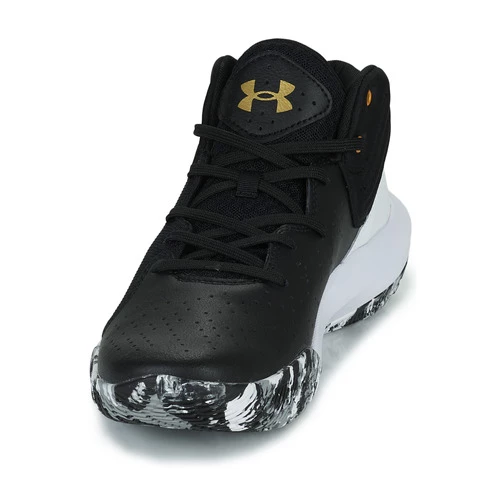 Chaussure de basket Under Armour. La combinaison de mesh et de cuir perforé offre un confort, une résistance et une respirabilité en toute légèreté. Languette en mesh respirant pour une aération stratégique. Col en mousse rembourrée pour plus de confort et de maintien. Semelle intermédiaire rembourrée en EVA pour plus de réactivité et une sensation de légèreté sous le pied. Semelle extérieure en caoutchouc avec motif à chevrons pour un maximum d’adhérence et de contrôle. Poids : 383 g.